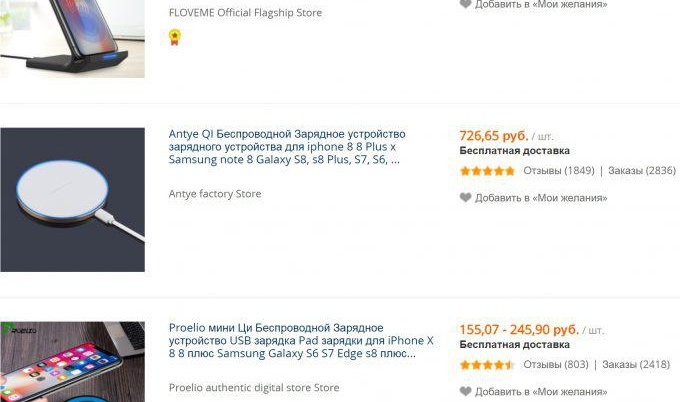 Cependant, lors de l'achat de produits, par exemple sur Aliexpress, vous devez faire attention à la note du vendeur, en plus de cela, regardez la marque elle-même, eh bien,si elle est au moins peu connue ou si quelqu'un a déjà acheté l'appareil avant vous et laissé un avis positif. En règle générale, les consommateurs russes achètent des modèles qui prennent en charge norme de charge sans fil Qi, puisqu'il est le plus populaire dans notre pays et qu'il est utilisé par la plupart des fabricants de smartphones et autres appareils portables.