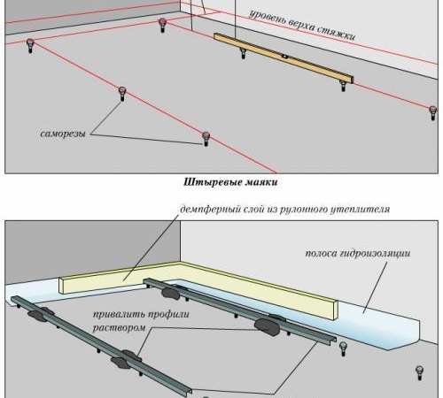Lorsque la distribution de la solution est terminée, vous devez effectuer entretien de la chape sol après coulage.Pendant presque une semaine, la surface doit être humidifiée pour un séchage et une résistance uniformes. Vous devez également vous débarrasser des balises installées et les dépressions qui en résultent doivent être amorcées.