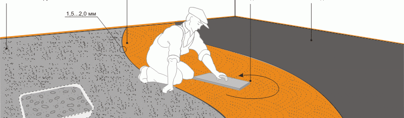 V chape semi-sèche de la fibre est ajoutée, ce qui rend la solution plus plastique et capable de s'étaler uniformément sur toute la surface de la chape rugueuse dans la pièce. Dans le même temps, après séchage complet, la chape de finition ne laisse pas apparaître de fissures, de retraits et d'autres défauts éventuels à la surface.