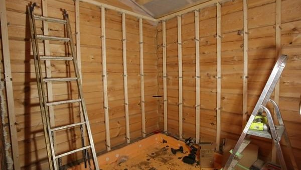 Pour fixer la doublure, il est nécessaire d'installer une caisse en bois constituée de barres de même épaisseur. Si nécessaire, les vides dans la caisse sont remplis d'isolant. En tant qu'appareil de chauffage, il est préférable d'utiliser de la laine minérale.Pour améliorer l'étanchéité à la vapeur et à l'eau, un film plastique doit être posé.