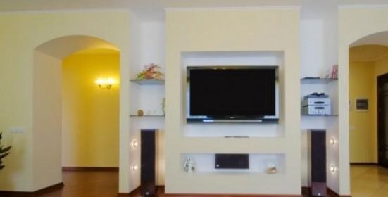 Dans la pièce, le téléviseur a l'air plus harmonieux dans une niche. Oui, et la sécurité dans cette conception est plus élevée.