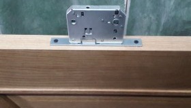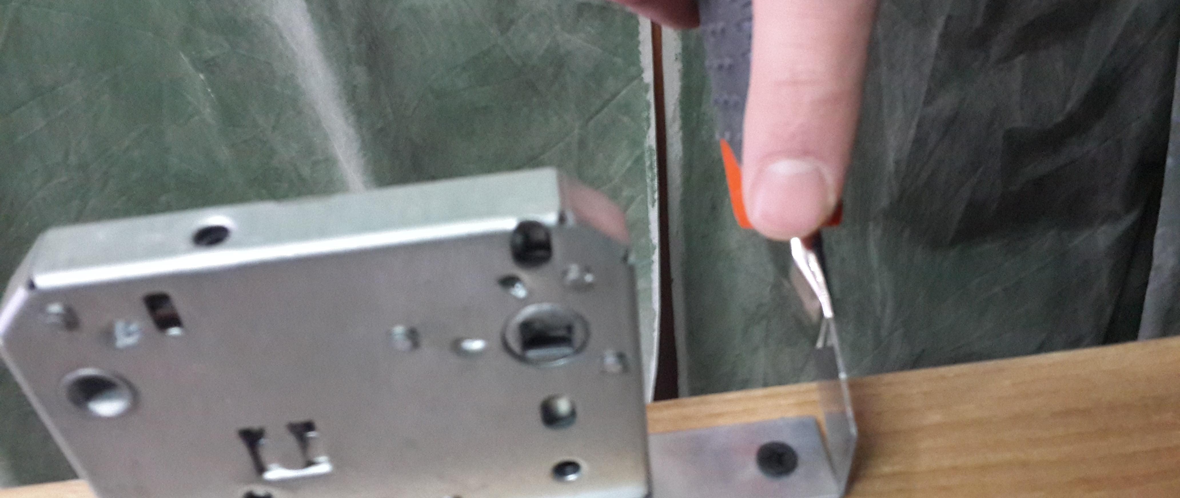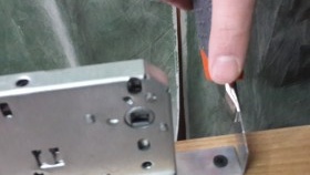 La norme habituelle pour l'installation d'une poignée de serrure se situe entre 900 et 100 mm selon la serrure de porte et la facilité d'utilisation. Les serrures et les loquets sont généralement de différentes épaisseurs de châssis et peuvent être rectangulaires ou avec des bords semi-circulaires. Considérez les options pour les serrures de porte à attache, mais elles ont le même principe. Nous fixons la serrure à bords rectangulaires à la porte avec la face avant au centre, en partant du principe que la poignée sera à 1 mètre du bord de la porte. Nous dessinons un contour avec un couteau de construction et nous obtenons un contour à insérer avec un ciseau ou à l'aide d'une fraiseuse. Méthode d'insertion d'une serrure à bords semi-circulaires, ces serrures sont généralement conçues pour être installées avec un routeur.