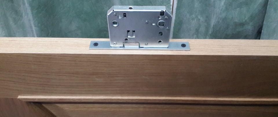Il est important que vous n'ayez pas besoin d'approfondir la sélection sous la plaque décorative de la serrure, laissez-la dépasser un peu mieux.Nous prenons, fixons la serrure à l'extrémité de la porte avec la face avant, en tenant compte du fait que la poignée sera au milieu de la porte, la distance de la poignée au sol est de 1 mètre: Nous décrivons clairement le contour de la serrure avec un crayon; Nous prenons le diamètre souhaité de la fraise; Nous fixons la profondeur de pénétration; Nous exposons l'accent de la fraiseuse. Maintenant, nous commençons lentement le premier échantillon, en suivant le contour, l'essentiel est de ne pas dépasser les bords pour ne pas gâcher la porte. Nous procédons à la deuxième étape d'insertion de la serrure, mesurons la largeur du corps de la serrure, prenons un collet du diamètre souhaité et commençons à échantillonner la profondeur. Nous passons à un collet allongé et sélectionnons toute la profondeur de la serrure.