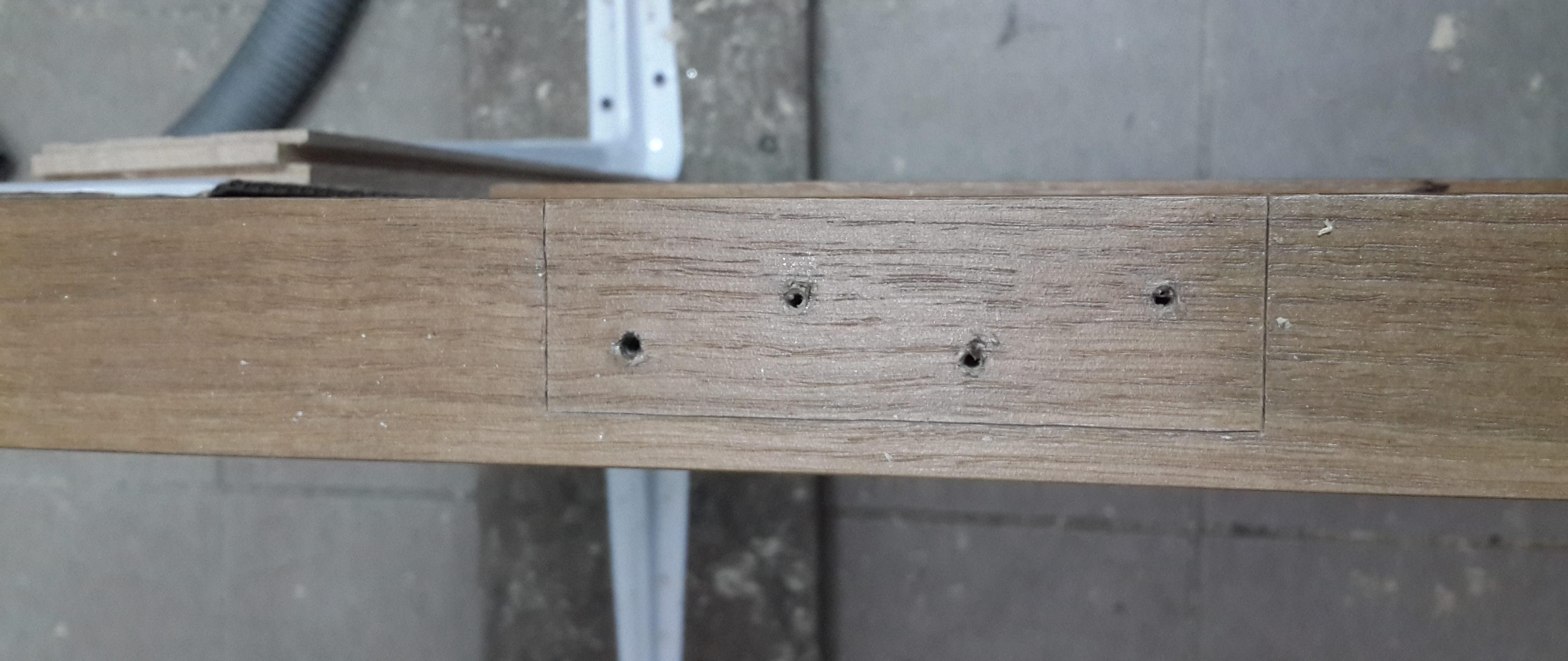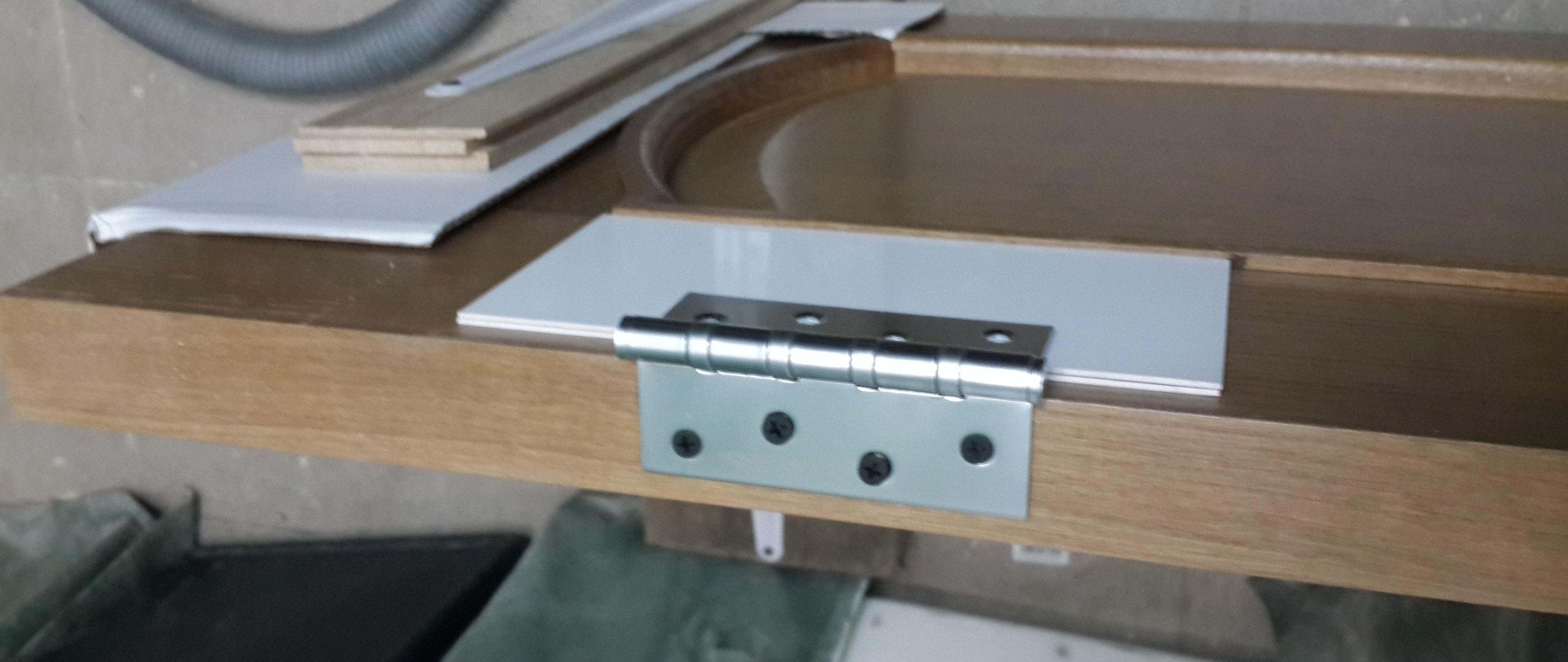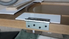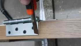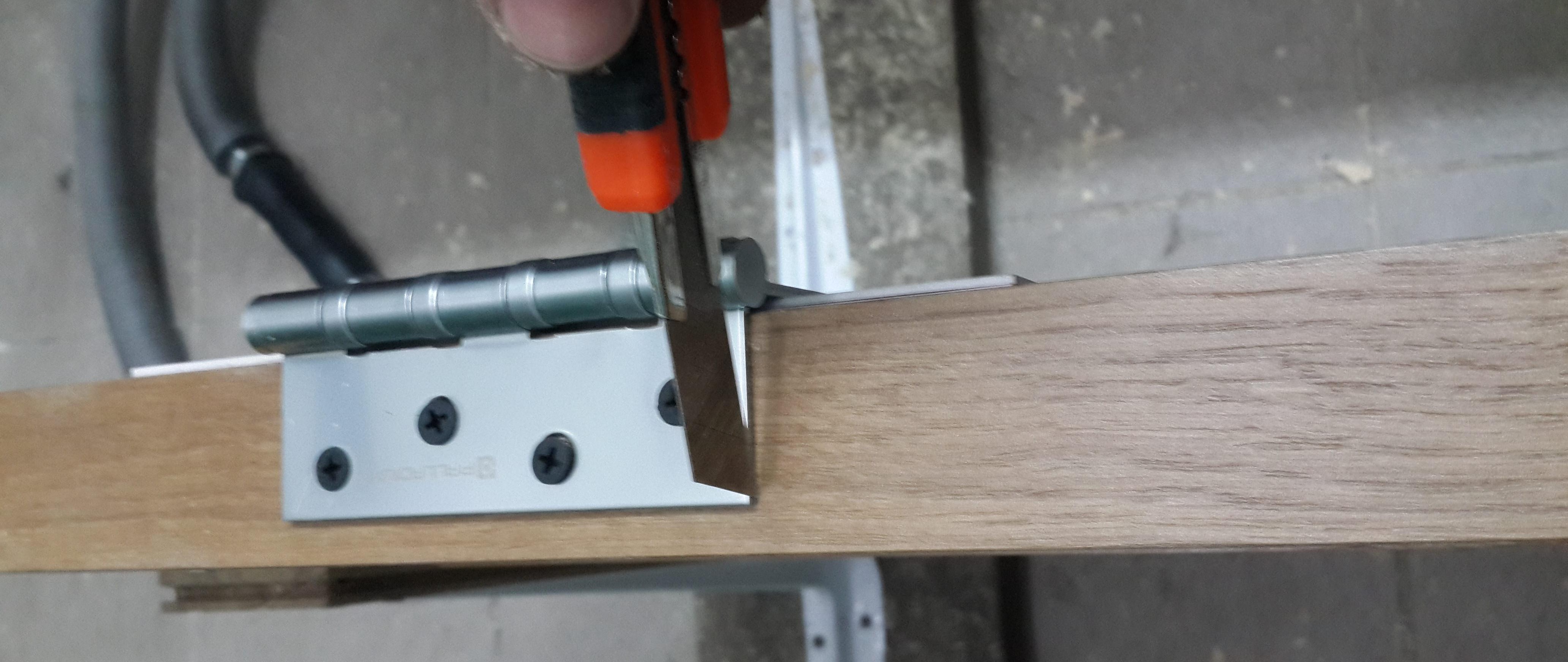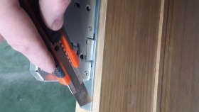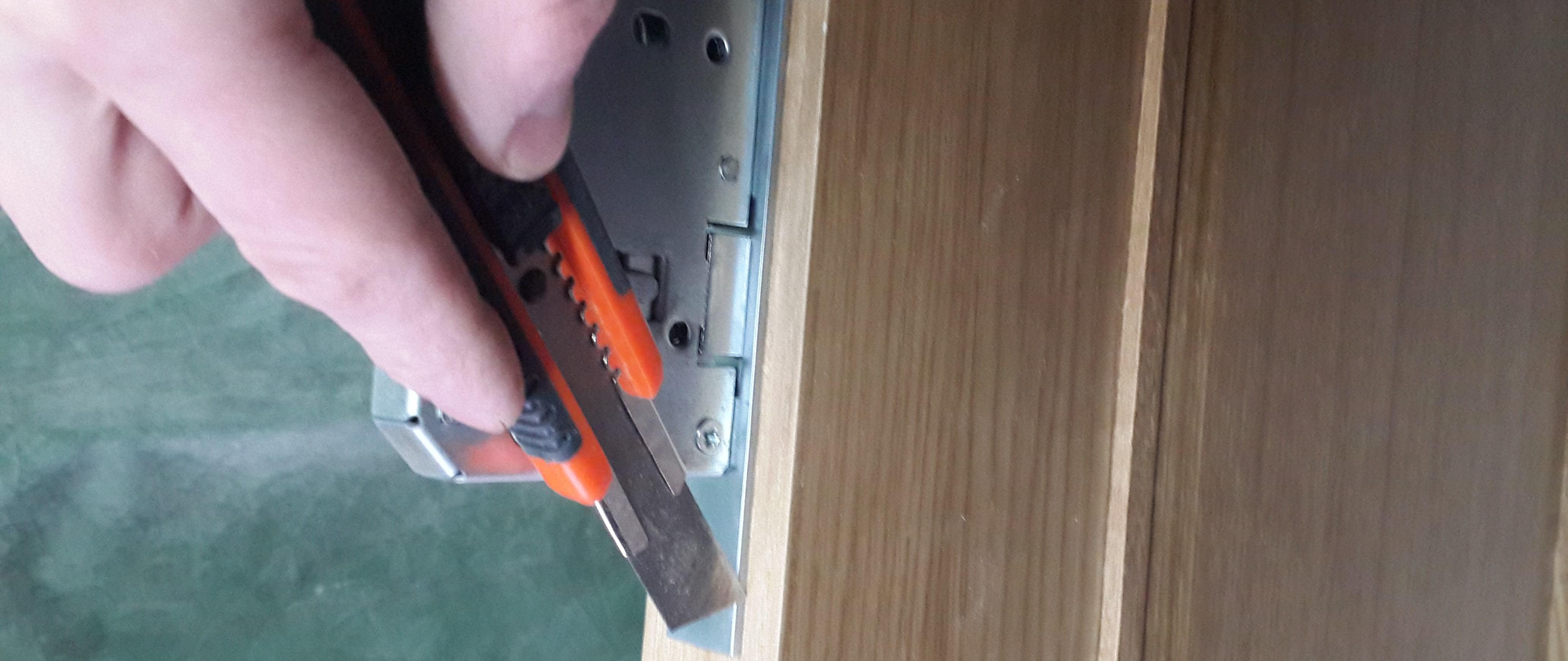 Étant donné que la profondeur de la boîte est différente, vous devez ici calculer clairement l'écart.Faites généralement un espace à partir du bord de la boucle plus 2 mm. Après avoir réglé les écarts de hauteur et la distance latérale, nous fixons la boîte à la charnière, vérifions la fermeture, nous encerclons parfaitement le contour des charnières avec un couteau et retirons le rail.