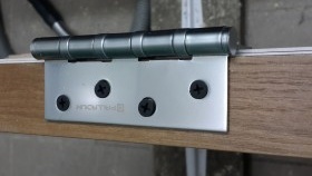 - Caché: cette conception n'est pas visible lorsque le vantail est à l'état fermé. La charnière n'est partiellement représentée que lorsque la porte est ouverte. Le montage s'effectue aux extrémités.