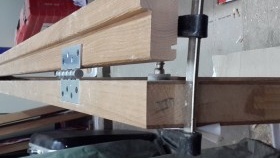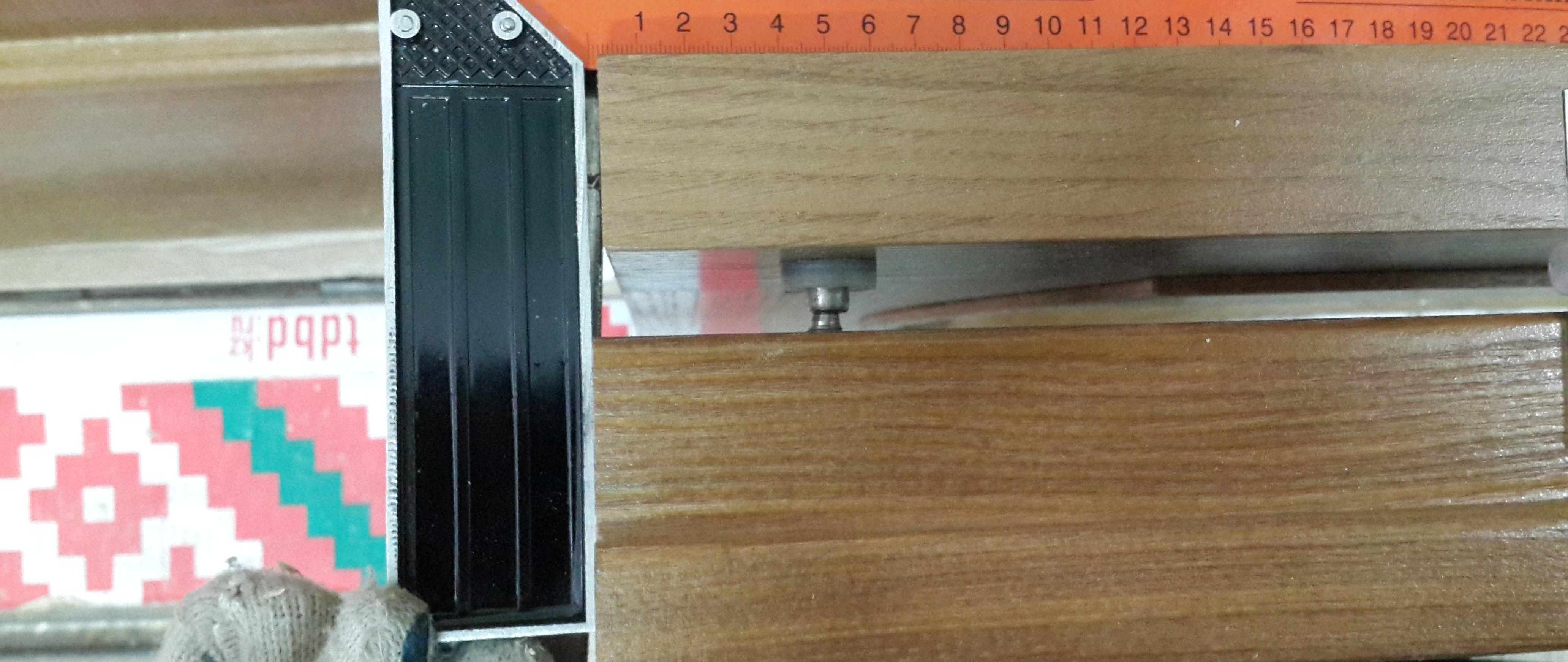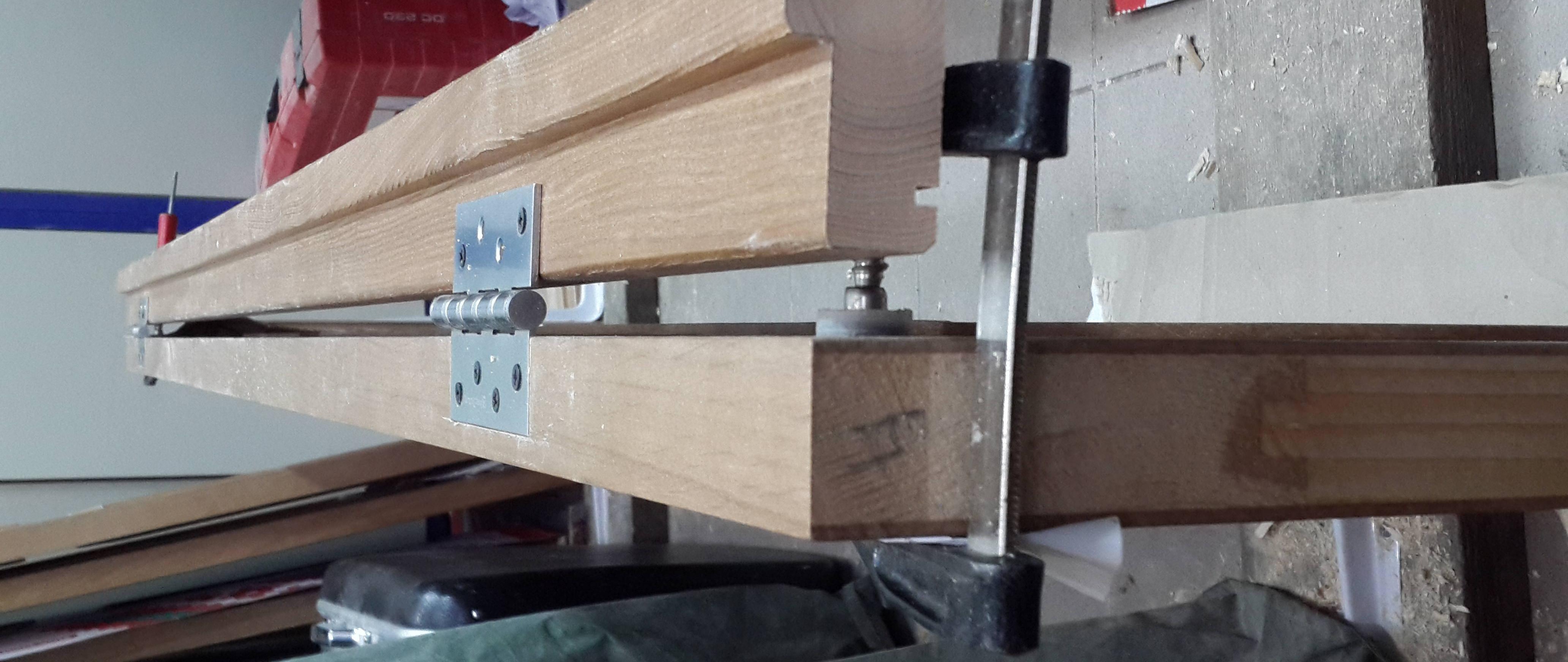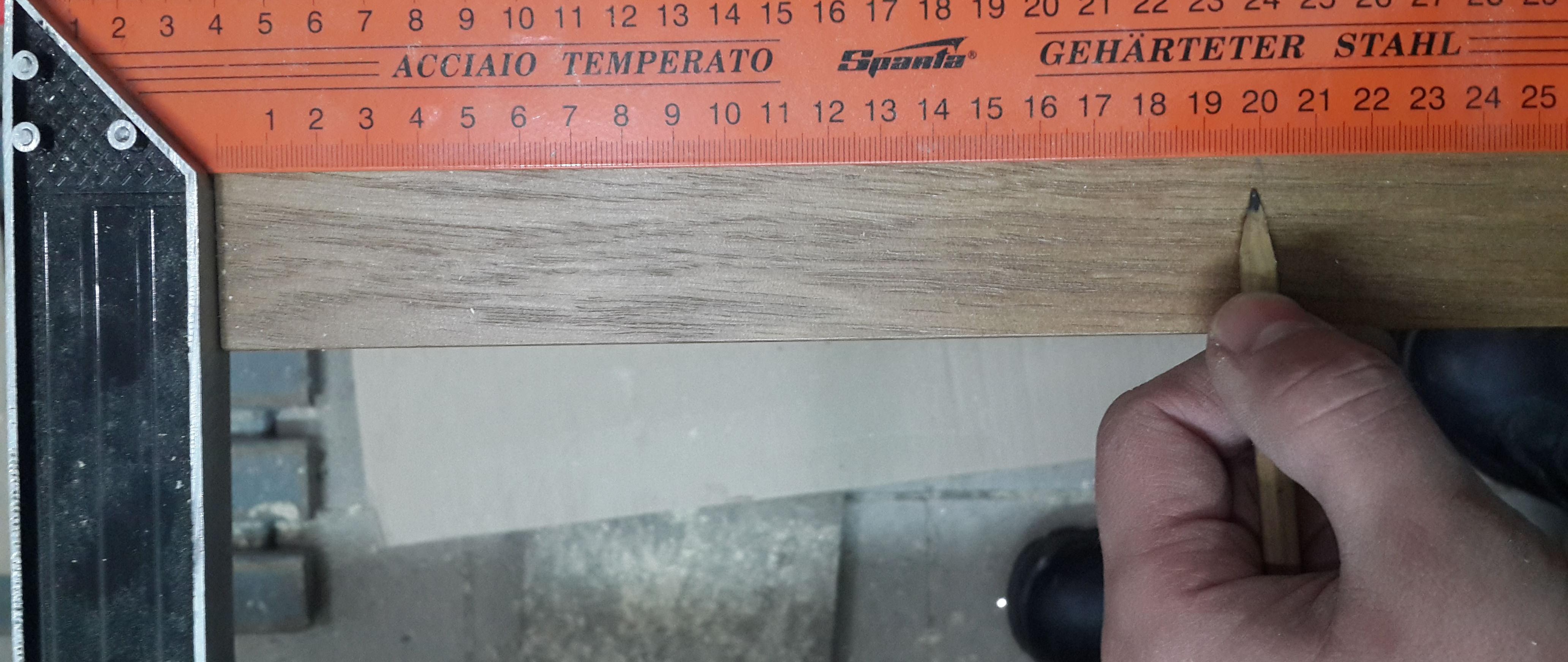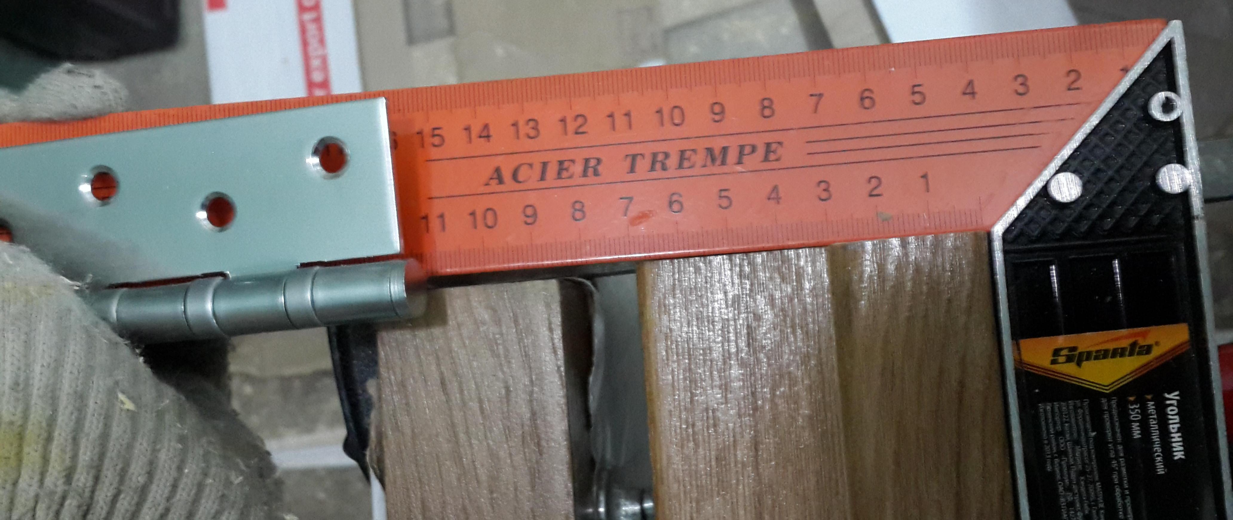 Puisque nous avons déjà décidé de la longueur (2018mm). Nous considérons la largeur à condition que vous deviez faire un espace entre le cadre et la porte de 2 mm de chaque côté. Vous devez faire attention aux charnières, quel est l'écart longitudinal. Tout a été pris en compte, nous avons lavé la largeur. Lors de l'assemblage de la boîte, il est très pratique d'utiliser une pince d'angle. Nous plaçons tous les détails sur une surface plane et définissons clairement les angles et les inclinaisons.