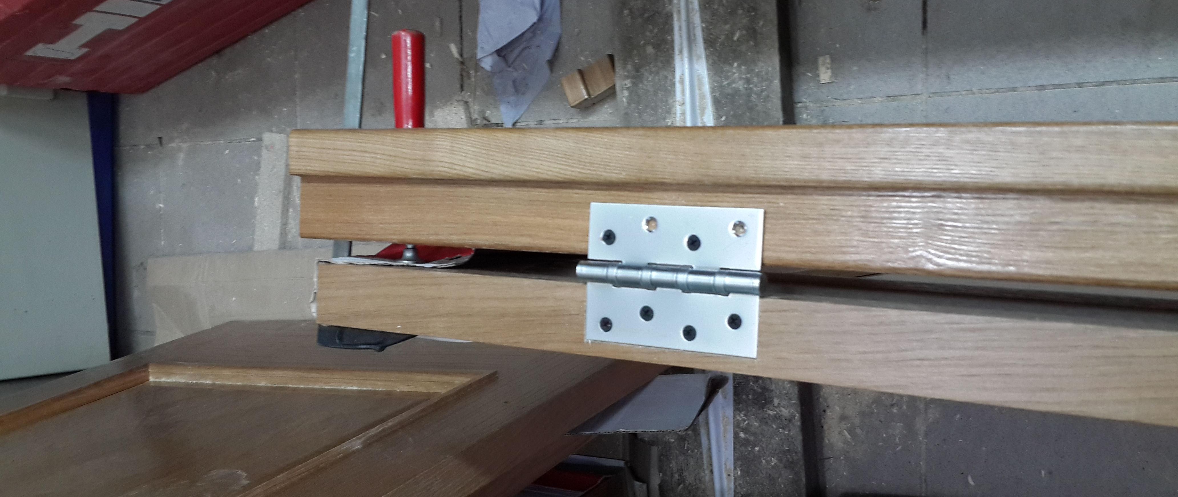 Un détail important pour que la porte ne frotte pas, vous pouvez légèrement incliner un côté pour l'agrandir. Avec les dégagements corrects, ce n'est pas nécessaire. Nous connectons les éléments du cadre de la porte, après avoir préalablement percé des trous pour eux avec des vis afin que le cadre ne se fissure pas. La boîte est prête à être assemblée.