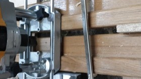 Et donc commençons à échantillonner les charnières de porte, prenons-les, réglons la profondeur sur la butée du routeur, pour cela nous utilisons la charnière, réglons-la dans un état pressé entre la butée et ajustons la profondeur de pénétration. Cela n'affecte pas particulièrement le diamètre de la pince pouvant être utilisé pour le taraudage et 12 mm. - 18 millimètres. Nous plaçons le limiteur d'arrêt le long du bord, le fixons et procédons à l'approfondissement. Tenir clairement la fraiseuse et ne pas dépasser les limites des boucles. Nous affinons le reste avec un ciseau, nous obtenons ainsi un siège clair et fixons les boucles.