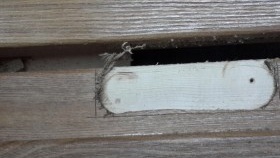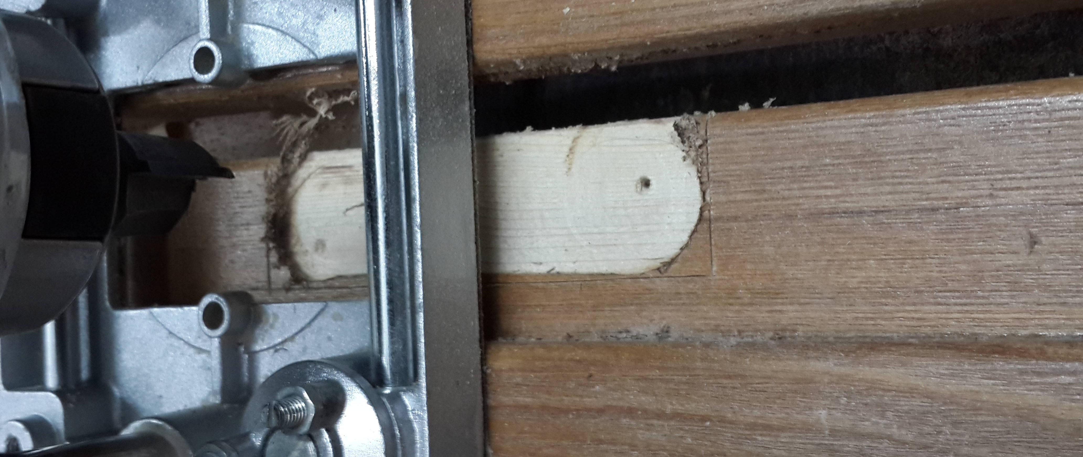 Travaillez très soigneusement, tenez fermement la machine, car il peut y avoir des clous, des nœuds, des vis. Il est important de savoir que la fraiseuse vibre et que le revêtement du vantail de la porte peut être endommagé (surtout pour les modèles de machines bon marché).