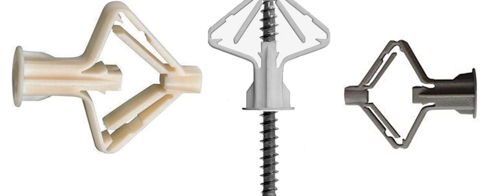 Le plus courant dans les travaux liés aux cloisons sèches est la cheville "papillon". Il ressemble à un papillon aux ailes déployées. Le matériau principal pour la fabrication des attaches est le polypropylène. Des produits métalliques sont également en vente.