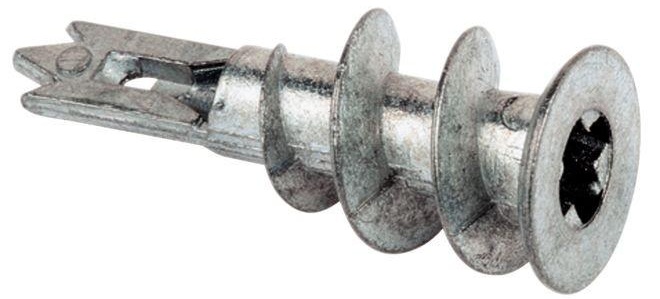 Besoin de faire un trou. Insérez-y une cheville avec des lames de serrage. Dès que les barreaux ont dépassé les frontières construction de cloisons sèches, le ressort se déclenche et les lamelles se redressent, se fixant ainsi de l'autre côté du GKL.