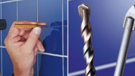 - Si surface de cloison sèche fini avec des carreaux de céramique, il est nécessaire de faire un trou d'un diamètre égal à la cheville.Dans ce cas, une perceuse avec une pointe spéciale (gagnante) est utilisée.