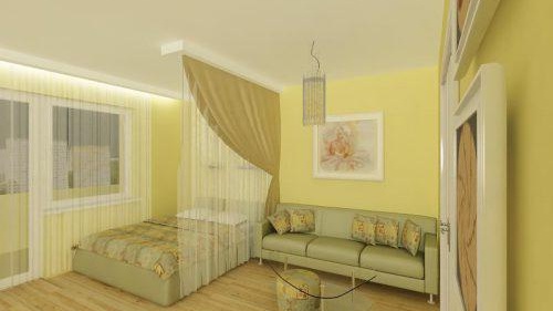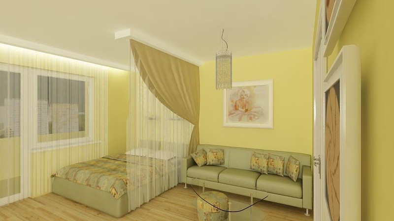 Un endroit pour dormir et se détendre peut être décoré d'un rideau pour créer une atmosphère supplémentaire de confort et d'intimité. Si la pièce a de hauts plafonds, il est permis de créer des cloisons suspendues qui tombent à une certaine distance de la surface supérieure.