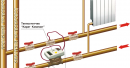Le projet comprend un zonage étage par étage du système de chauffage central avec l'installation de points de chauffage séparés.De là vient le câblage des collecteurs d'alimentation et de retour de chaque appartement. Un tel système de chauffage central vous permet d'installer légalement un compteur de chaleur dans un appartement.