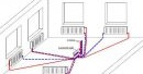 Il convient de noter immédiatement qu'il est peu probable que le bureau de gestion autorise la mise en œuvre de la deuxième méthode. Cela viole l'équilibre du système, le liquide de refroidissement peut tout simplement ne pas atteindre les étages supérieurs. Toute modification non autorisée apportée au schéma de câblage du chauffage est inacceptable. Vous serez condamné à une amende, les appareils installés ne seront pas acceptés en fonctionnement, ils vous obligeront à restaurer le câblage.