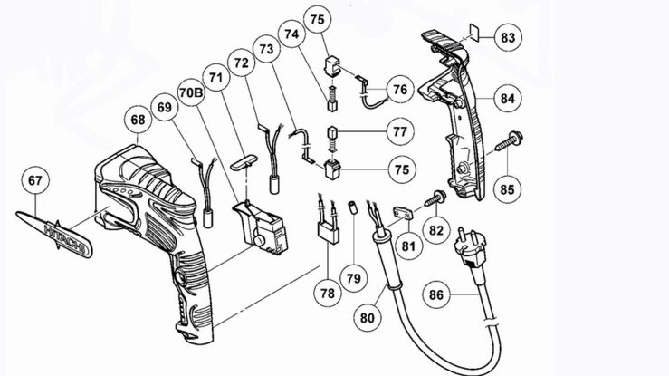 - Démontage de la partie électrique du marteau perforateur Hitachi