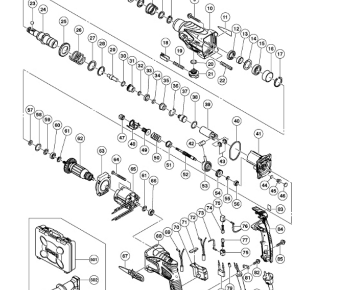 Le démontage du perforateur Hitachi DH24PC3 est nécessaire lorsque vous souhaitez réparer vous-même l'outil. Mais pour cela, vous aurez besoin non seulement d'un schéma détaillé du perforateur Hitachi, mais également d'instructions pour le démonter, le lubrifier et le monter.