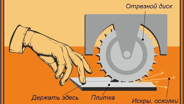 Au lieu d'un outil professionnel et de la nécessité d'économiser une couche de glaçure, une incision est faite sur le devant avec un coupe-verre.Après cela, au verso, la meuleuse d'angle fait une inscription sous la forme de la lettre «V», qui doit être faite sur toute la largeur de la tuile. Il ne reste plus qu'à casser l'élément et le travail restant est terminé avec du papier de verre.