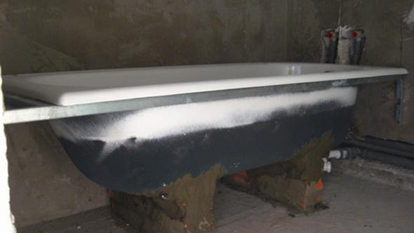 Il convient de rappeler que lors du montage de la baignoire sur pieds, un sol plat est requis en dessous. Cependant, il n'est pas nécessaire de retirer le sol si la baignoire est installée sur des briques. Dans ce cas, l'ensemble du processus est similaire et ne diffère que par le fait que le produit est situé sur une base en brique, ce qui est fiable pour un objet aussi lourd. Vous n'avez qu'à niveler la base.