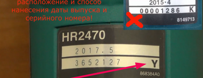 Il existe des modèles originaux de marteaux rotatifs Makita 2450, 2470, dans lesquels l'inscription sur le corps vert du rotor est appliquée sur un autocollant, mais en dessous l'inscription faite par extrusion est cachée.