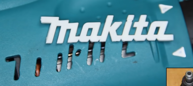 Il existe des perforateurs Makita, dans lesquels un autocollant autocollant est collé sur le corps. Mais si vous regardez attentivement, vous pouvez voir l'inscription Makita, faite en retrait, sous l'autocollant.