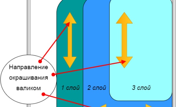 La peinture est appliquée avec des mouvements longitudinaux. Les première et dernière couches sont dirigées perpendiculairement à la fenêtre. Dans ce cas, les légères traînées laissées par le pinceau seront moins visibles. Pire encore, quand il y a des endroits non peints. Pour éviter que cela ne se produise, il est nécessaire de créer un éclairage lumineux dans la pièce. Lorsque vous travaillez, vous devez vous éloigner périodiquement dans différentes directions et inspecter la surface à traiter. Cela vous permettra de remarquer les lacunes et les rayures.La couche finale est appliquée uniquement avec un rouleau à poils courts et dans une direction à partir de la fenêtre.