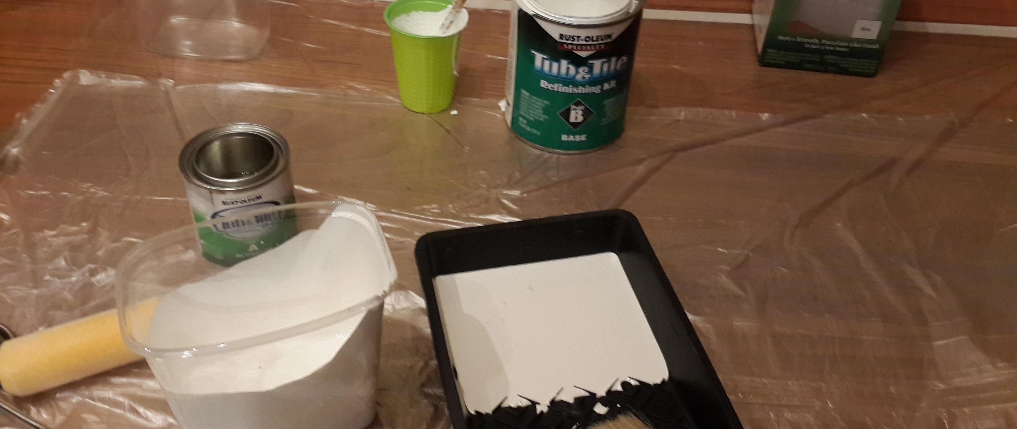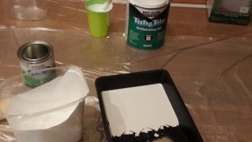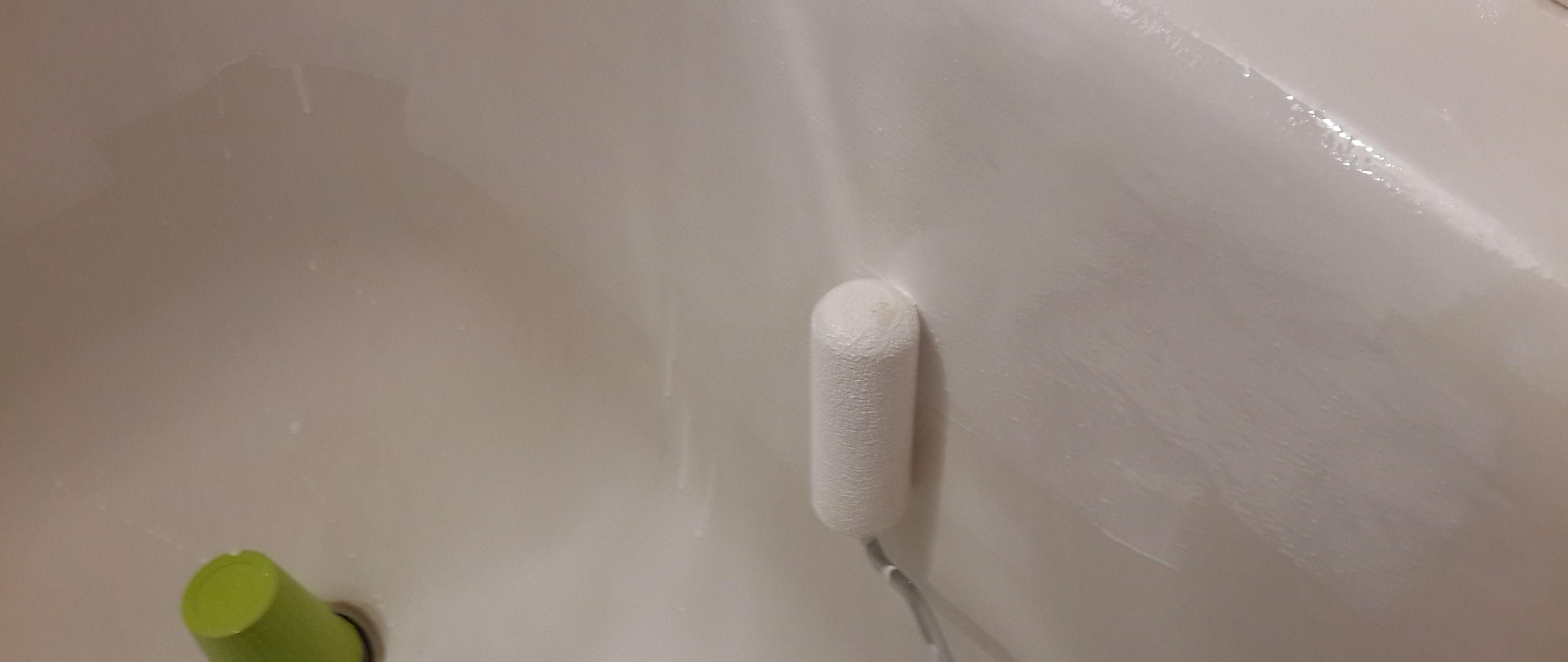 La peinture acrylique Tub&Tile s'étale bien, mais a une forte odeur spécifique, à appliquer dans une pièce bien aérée. A un long temps de travail.