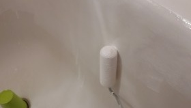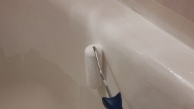 Pour peindre une baignoire en fonte à l'intérieur, vous devez vous procurer un rouleau à poils courts et acheter le bon liquide. Il est nécessaire de peindre avec une spirale allongée effilée des bords au drain, vous devez surveiller attentivement afin que les bulles n'apparaissent pas. S'ils se produisent, ils doivent être poinçonnés avec une brosse. Il est nécessaire d'appliquer une autre couche après la première dans une heure.