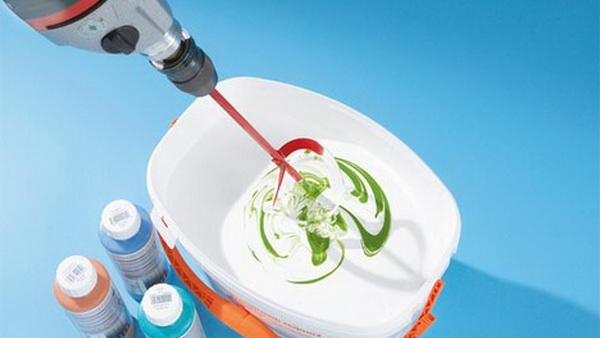 - En remuant constamment la peinture, ajoutez de la couleur en un mince filet.