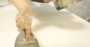 La couche d'apprêt est recouverte d'une couche de finition en plâtre et est conçue pour éliminer les moindres défauts. L'épaisseur de la couche de finition ne dépasse pas 2 mm. La couche de finition est appliquée sur la couche d'apprêt humide avec une large spatule en arc de cercle, en appuyant le bord inférieur contre la couche d'apprêt.