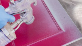 - Lorsque toutes les bandes sont collées, les produits sont préparés pour une peinture ultérieure. Il convient de garder à l'esprit que vous devez attendre un certain temps pour que la colle sèche complètement. Après cela, la surface est apprêtée. Pour ce faire, vous pouvez utiliser le pistolet pulvérisateur. Le réservoir est rempli d'un apprêt et pulvérisé à une distance de 20 cm du produit. Avant de poursuivre les travaux, il est nécessaire d'attendre que l'apprêt sèche. Cela prendra près d'une heure.