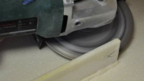 L'ordre de travail consiste à couper une rainure avec une meuleuse avec un disque diamanté. Nettoyer et dégraisser la surface à proximité de la zone à réparer.