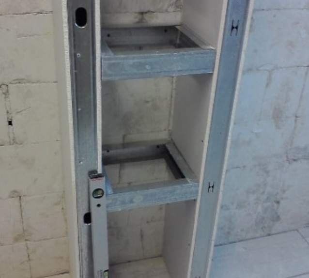 Tout d'abord, un cadre est construit à partir de profilés métalliques. Deux types de profilés sont utilisés : guide (PN) et rackable (PS). Tout d'abord, les profilés de guidage sont fixés aux murs, au sol et au plafond ; puis, sur leur base, des racks verticaux sont montés. Enfin, des cavaliers horizontaux leur sont attachés. La largeur de tous les profilés est de 50 mm.