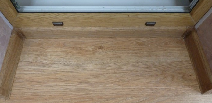 En l'absence de différences de hauteur, la solution optimale peut être un seuil en stratifié. De plus, la solution permettra de mettre en valeur de manière constructive la porte du balcon et de donner une combinaison visuelle du matériau avec le sol.