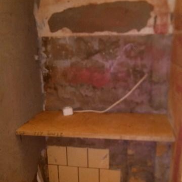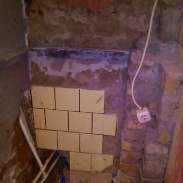 Naturellement, il a préalablement réalisé le câblage, l'assainissement et l'approvisionnement en eau de tous les principaux lieux de consommation, en tenant compte des pentes et des raccordements, mais il s'agit d'un problème distinct. J'ai fait passer une prise séparée dans la machine ouzo pour la protection actuelle. J'ai calculé à l'avance la taille de l'étagère au-dessus de la machine à laver et j'ai procédé à l'installation des pieds du système d'installation sur des ancrages. Parce que j'ai un mur déjà clôturé avec une niche en contreplaqué pour le réfrigérateur, qui est déjà dans la salle de bain pour gagner de la place dans une petite cuisine. De plus, une rangée de briques a été posée de manière à ce que toute la charge principale y soit appliquée.