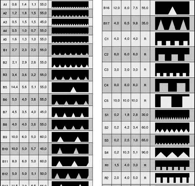 Comme tout autre outil, les spatules ont également leurs propres marques, qui indiquent la taille et la forme des dents. Il est écrit comme une combinaison de lettres et de chiffres. Des exemples de marquages sont présentés dans le tableau ci-dessous :