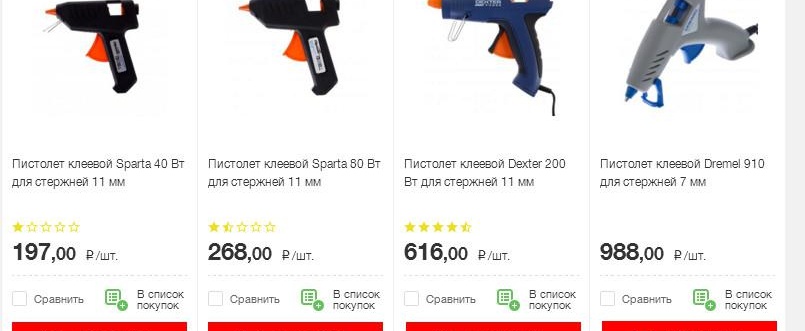 Je suis tombé sur le fait que les pistolets très bon marché ne fonctionnent pas très longtemps, ils durent plusieurs applications puis s'éteignent. J'essaie de choisir à un coût d'au moins 500 roubles, il vaut mieux acheter une fois et servira longtemps que d'en acheter constamment un nouveau. De plus, sur les pistolets très bon marché, toutes les colles ne fondront pas, certaines n'ont pas assez de température. Comment écrivent-ils ici Il existe de nombreux adhésifs aux propriétés différentes, vous devez choisir en fonction de votre besoin.
