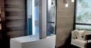 Avantages des panneaux de revêtement pour la salle de bain : résistance aux changements de température, pas de décoloration avec une exposition prolongée à la lumière, ignifuge, facile à entretenir et ne se corrode pas et ne fongique pas. Parmi les inconvénients, il y a des difficultés dans la conception des joints entre les panneaux, ainsi qu'un prix élevé.
