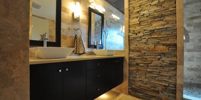 La plupart des types de pierre naturelle sont idéales pour la décoration de la salle de bain, car elles ne craignent pas l'humidité et les températures élevées.On peut les voir dans le sauna, l'espace spa et le hammam. Le matériau naturel est complètement hygiénique et sûr. Contrairement à d'autres finitions, il n'a pas peur des champignons et des moisissures. Pas d'odeurs désagréables, de pourriture et d'allergies !