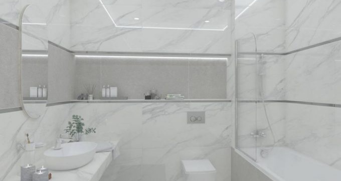 Compte tenu des recommandations des designers, il est souhaitable d'utiliser ce type de carrelage pour se concentrer sur l'une des zones de la salle de bain. Pour cela, une combinaison de différents types de tuiles est utilisée, y compris la simple standard. C'est pourquoi vous devez savoir ce que sont les carreaux de salle de bain.