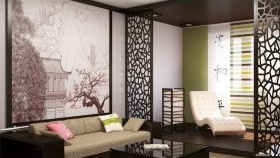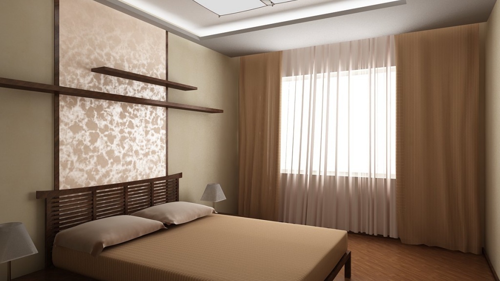 Ici, dans la conception, les carreaux de céramique de la collection Kerama Marazzi peuvent être utiles. Ce carreau est fabriqué dans un style oriental, imite la texture du bois d'if et présente un décor miniature avec un ornement floral stylisé semblable aux caractères japonais. Le carreau a deux palettes de couleurs : beige et marron. Décorer l'un des murs ou une partie du mur avec de tels carreaux créera un décor extraordinaire et donnera à votre chambre une atmosphère de sophistication et d'élégance.
