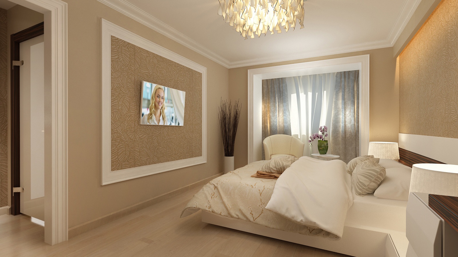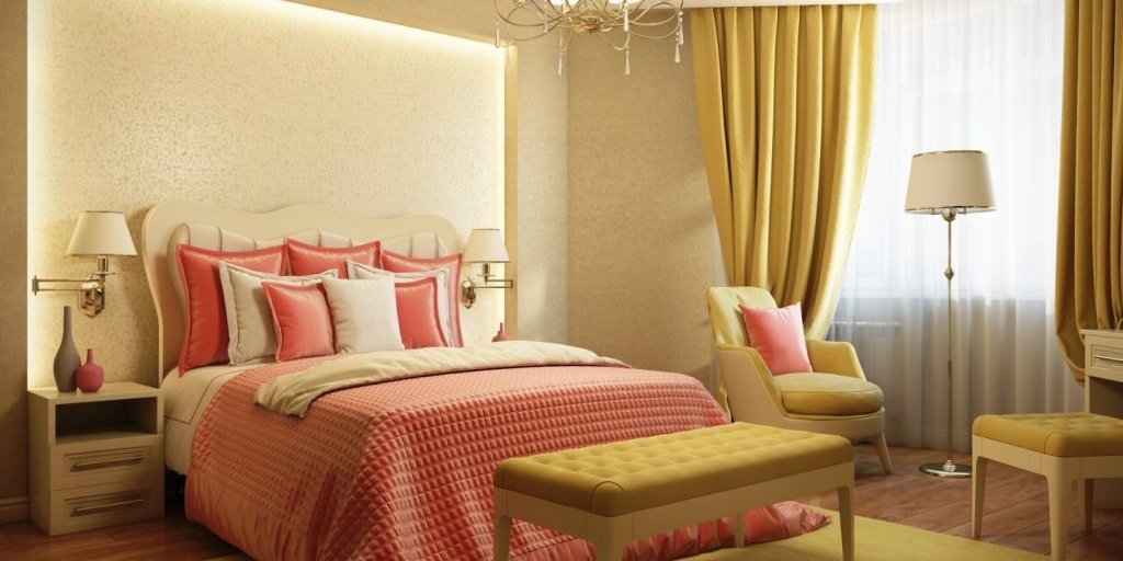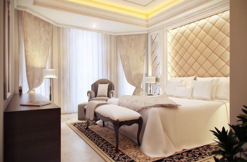 Les couleurs crème, sable ou café en combinaison avec le blanc sont très bonnes. Pour donner un charme particulier à votre chambre, utilisez une dorure modérée.