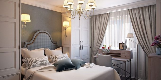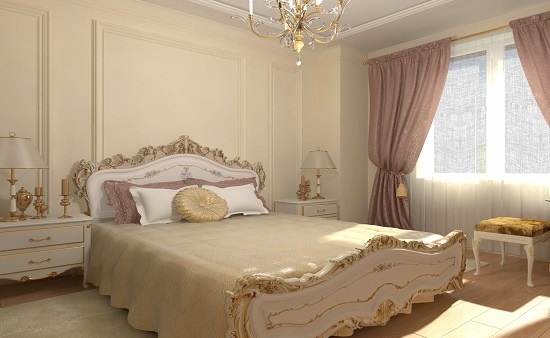 L'intérieur, décoré dans un style classique, ne devrait combiner que les nuances nobles des tons de lit calmes et en sourdine.