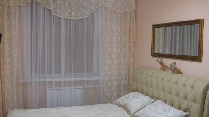 Les rideaux des fenêtres doivent être conçus dans le même style. Le mieux est de choisirrideaux assortis en tissu épais avec des lambrequins combinés avec de l'organza léger et brillant.