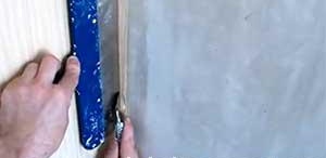 Ensuite, à l'aide d'un fil à plomb, et il est préférable d'utiliser un niveau long, une incision est pratiquée sur les deux toiles avec une nouvelle lame d'un couteau de montage.