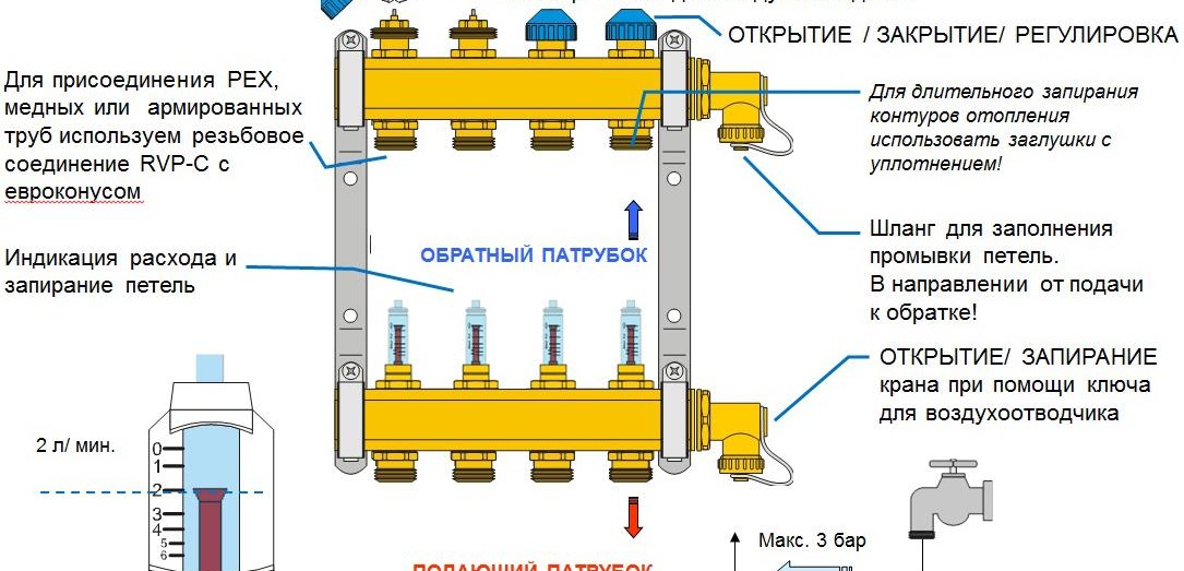 Le collecteur de distribution se présente sous la forme d'un segment de tuyau avec des branches. Son extrémité opposée aura une sortie qui est étouffée par une fiche conventionnelle. Il ne serait pas du tout superflu d'y placer un séparateur.