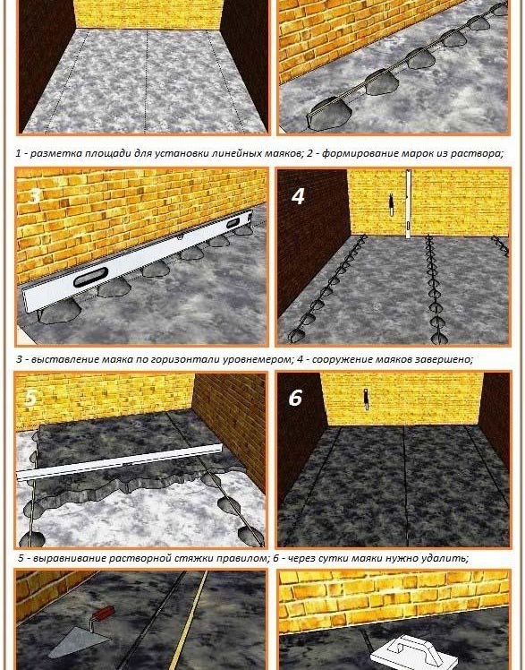 Pour former une base uniforme dans la pièce, il faut faire beaucoup d'efforts. Dans le même temps, il convient de prêter attention à un certain nombre de mesures préparatoires, qui comprennent, entre autres, installation de balises. Ils vous permettent de remplir au plus près du niveau, qui est également défini avant d'effectuer tout type de chape. Il y a une quantité énorme options de phare, dont le choix dépendra de l'option de remplissage spécifique.