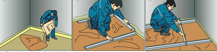 L'argile expansée pour chape sèche est initialement dispersée à l'intérieur sur une surface telle que plusieurs feuilles de GVL peuvent être posées. Sinon, il ne sera pas pratique de se déplacer et le montant supplémentaire rendra difficile la fixation des feuilles les unes aux autres. Même ces subtilités vous aideront à obtenir une réponse sur la façon de fabriquer une chape sèche de vos propres mains.