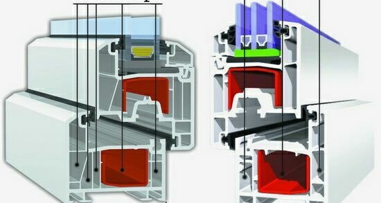 Et le dernier est le nombre de chambres dans le profilé en PVC (il est facilement déterminé à partir de la section du profilé en comptant les chambres verticales du bas au sommet du profilé). Ces caméras à l'intérieur peuvent être divisées en mini-caméras à l'aide de raidisseurs. Les options les plus courantes sont les profils à cinq et trois chambres.