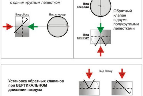 Le clapet anti-retour est une conception dans laquelle les lames de la vanne elle-même, situées sur l'axe, se déplaceront de manière à ce que l'air entrant dans la vanne n'entre pas dans l'appartement. Les masses d'air dans le clapet anti-retour ne se déplacent que dans un sens, et si elles changent brusquement, l'appareil se ferme, ce qui empêche l'air de pénétrer dans la pièce.
